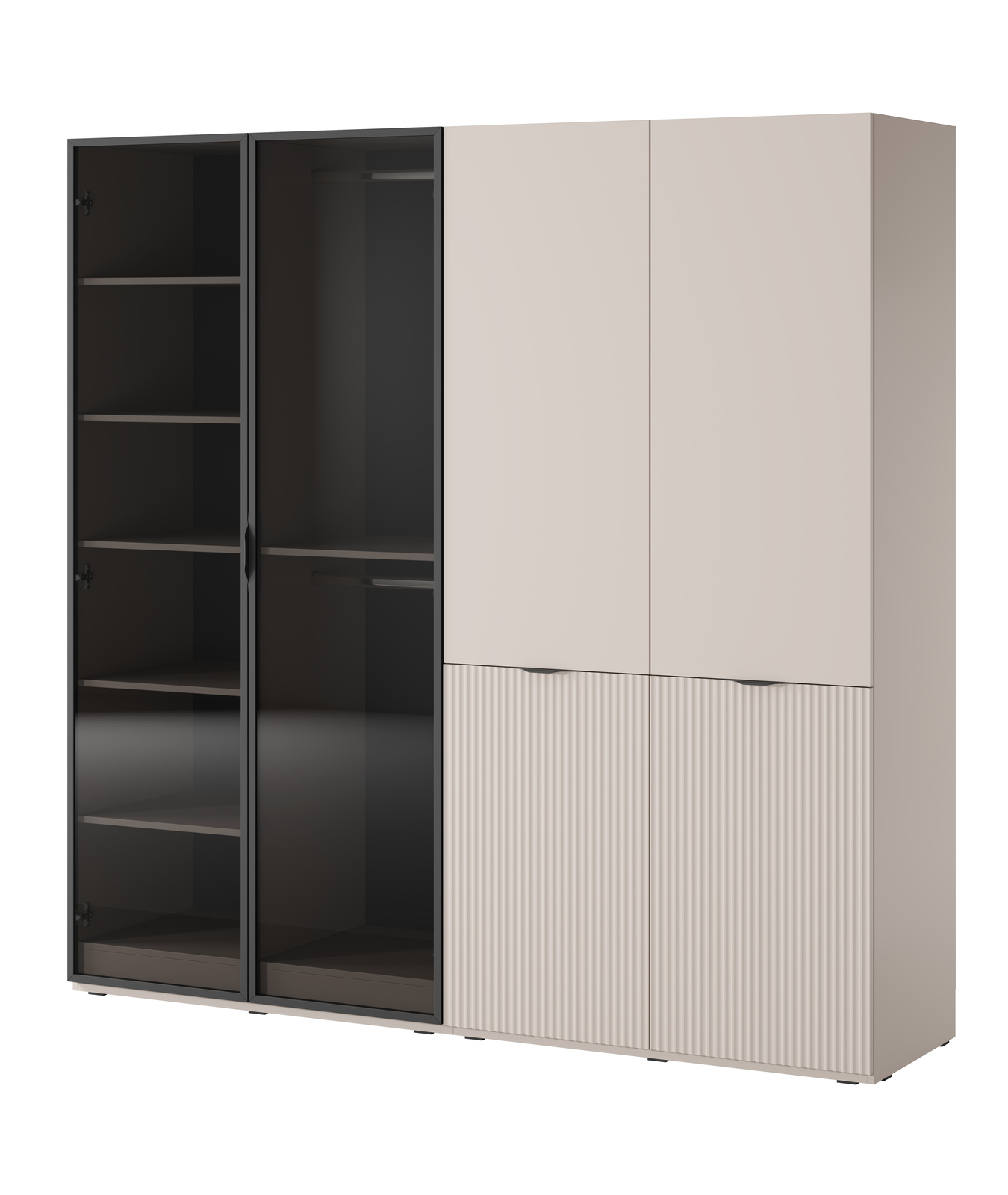 Viertüriger Schrank Zen in der Farbe Kaschmir + getöntes Glas