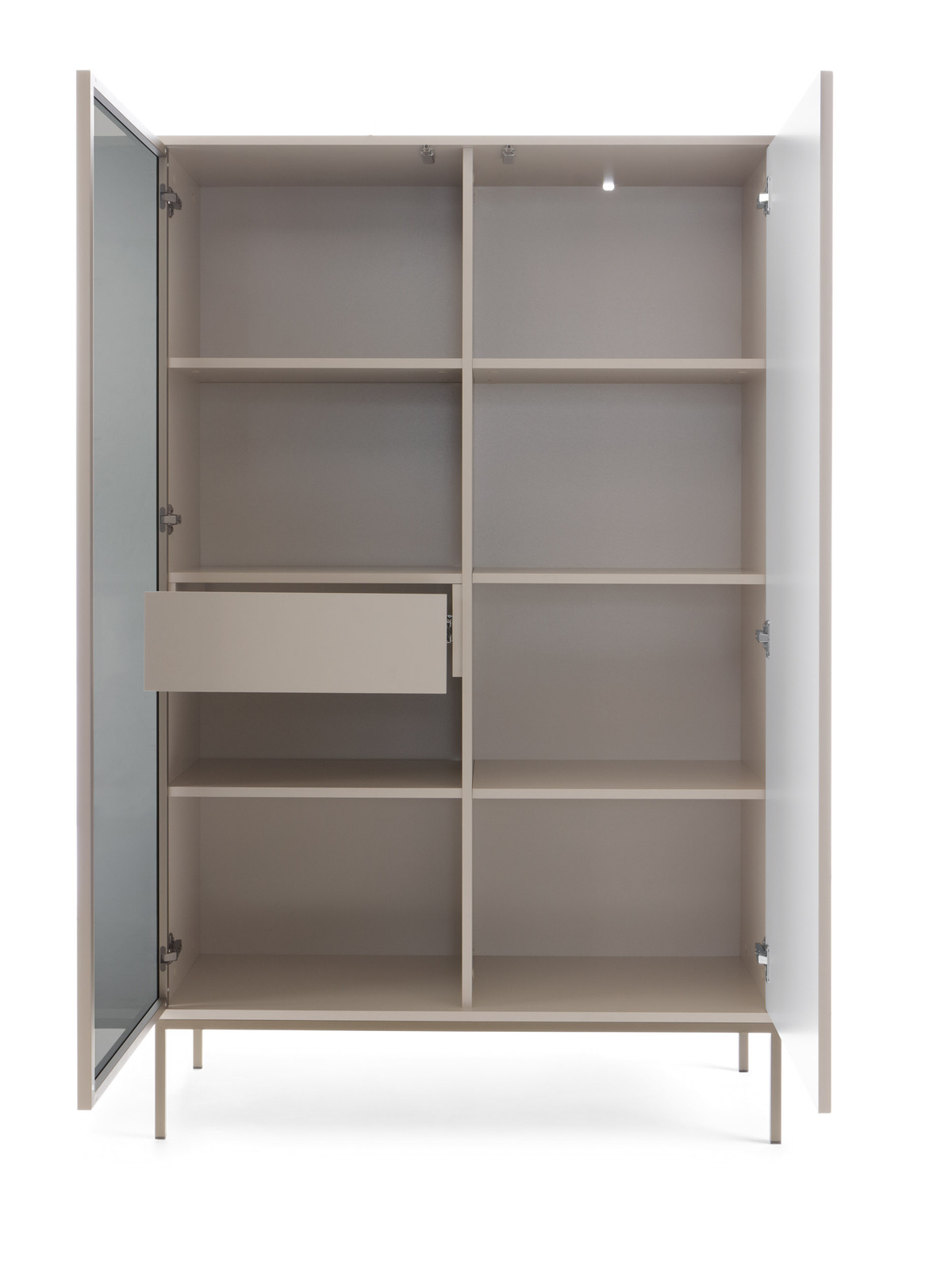 Vitrine Lagos 166 cm hoch, 2D1SZ mit Metallfüßen in Kaschmir + LED