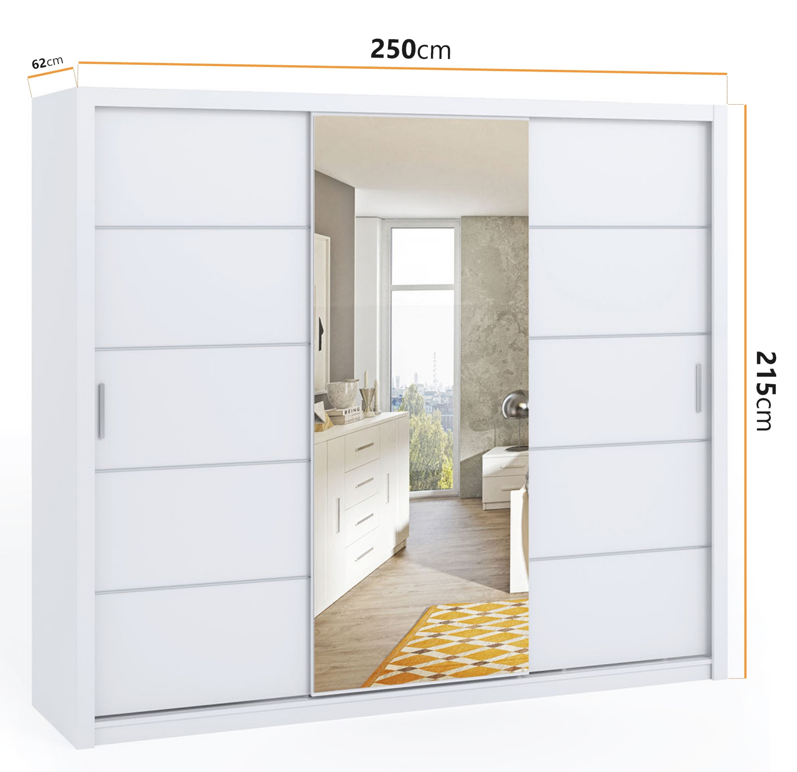 Weißer Schiebetürenschrank Tamiza 250 cm mit Spiegel