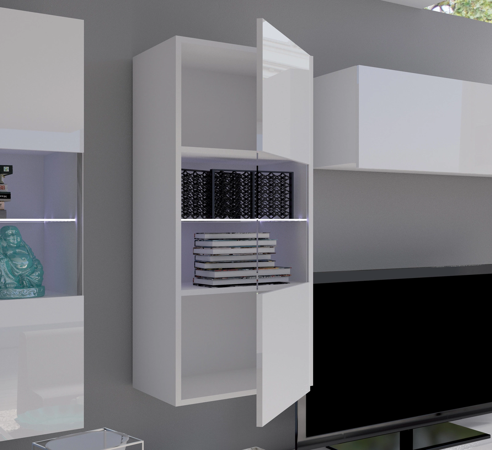 Die Wohnwand Montreal II ist die ideale Wahl für alle, die modernes Design und Funktionalität schätzen. Mit ihrem stilvollen Aussehen und ihren praktischen Lösungen passt sie perfekt zu den aktuellen Trends in der Innenraumgestaltung. Das Set besteht aus zwei horizontalen Hängeschränken und zwei Hängevitrinen, die viel Stauraum bieten. Zusätzlich ermöglicht der TV-Schrank die bequeme Aufstellung des Fernsehers und von Multimedia-Zubehör.