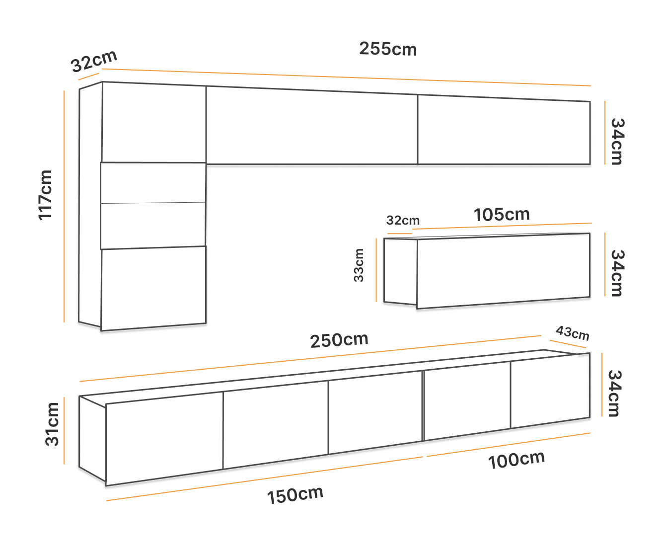 - Die TV-Schränke können als Hängemöbel oder Standmöbel montiert werden (Füße im Lieferumfang enthalten),
