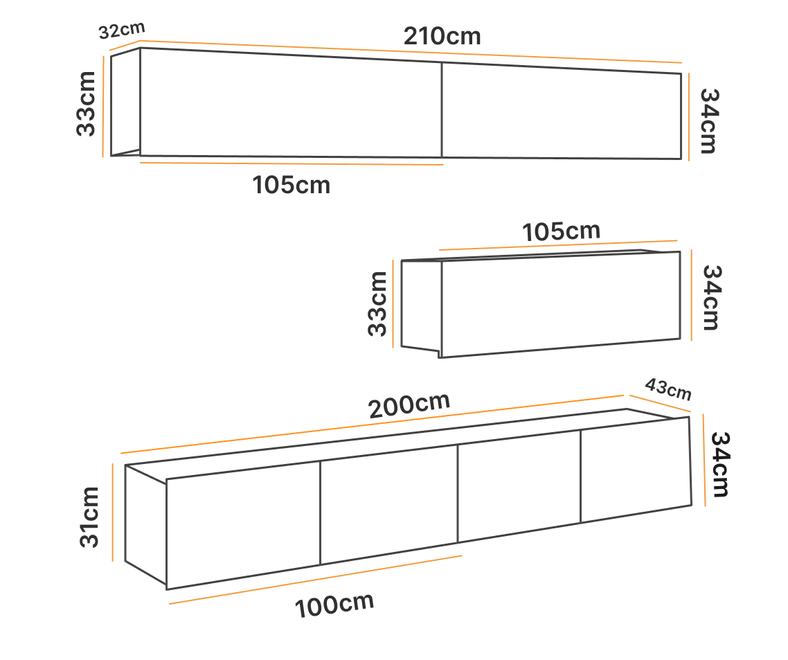 - Hängeschrank Montreal (3 Stück) - Breite: 105 cm, Höhe: 34 cm, Tiefe: 32 cm
