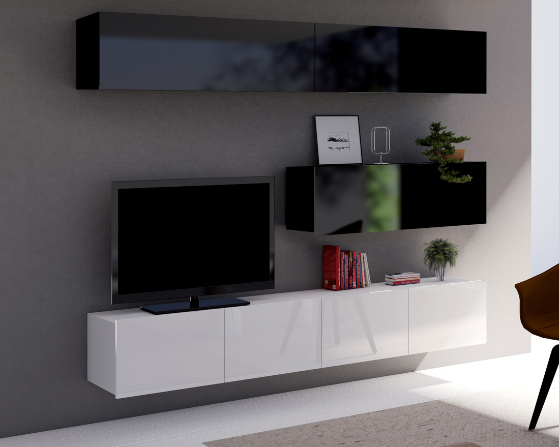 - Die TV-Schränke können als Hänge- oder Standmöbel montiert werden (Füße im Lieferumfang enthalten),