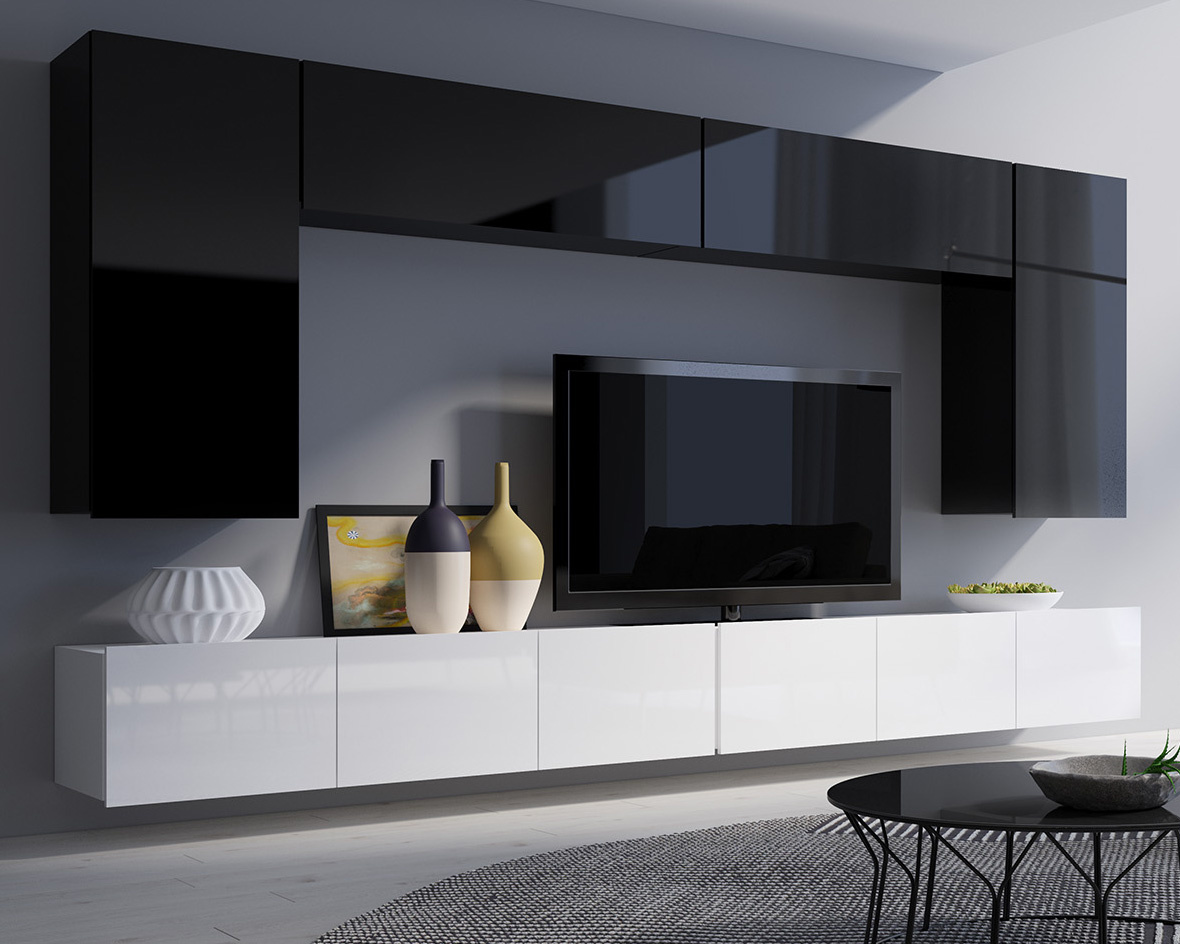 Wohnwand Montreal VII in Schwarz und Weiß – Moderner Stil und kontrastreiche Eleganz