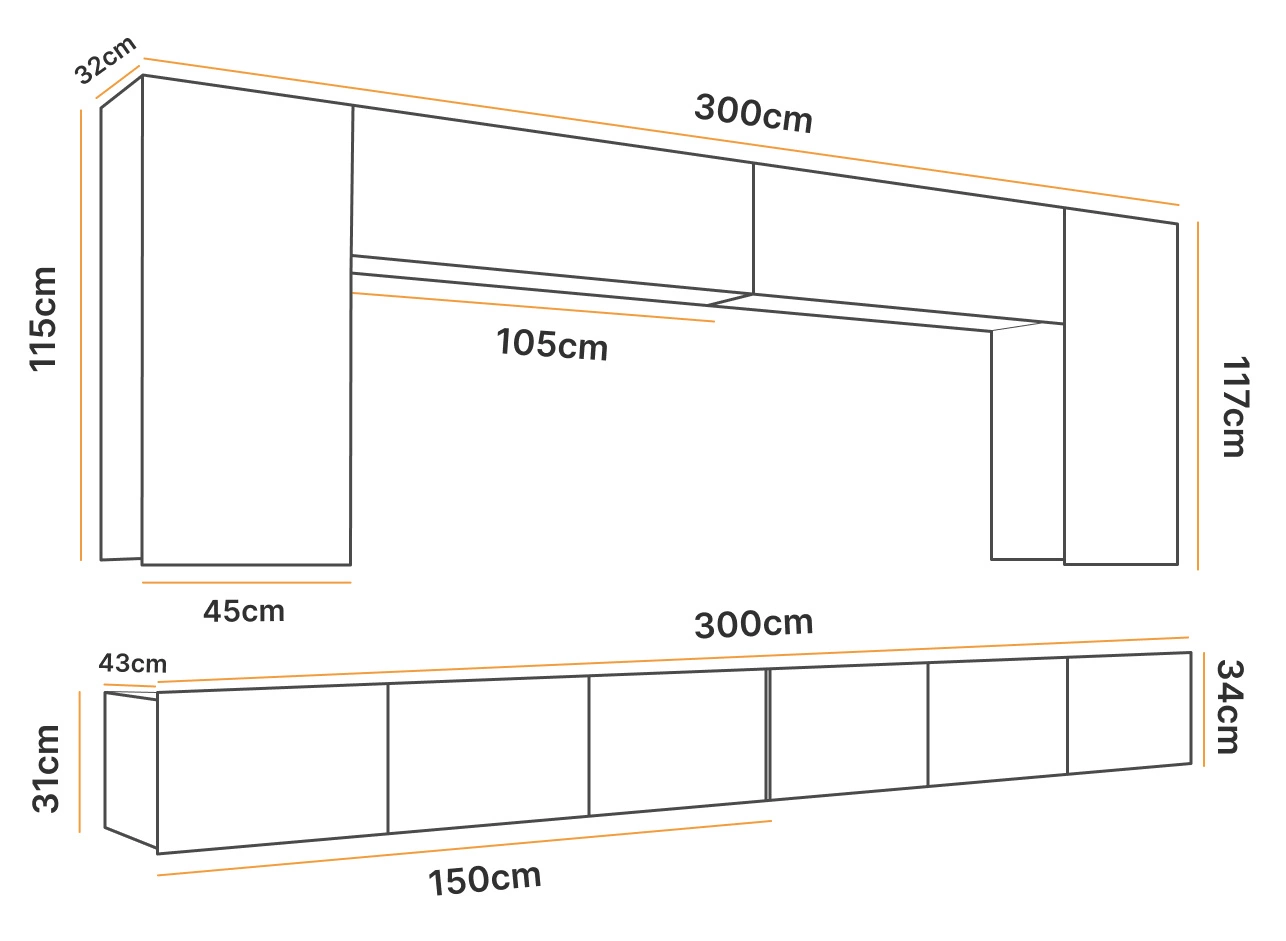 Tiefe der oberen Elemente: 32 cm