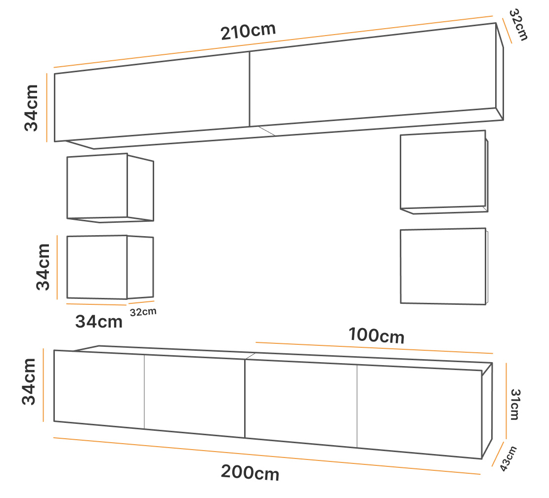 - Hängeschrank quadratisch Montreal (4 Stück) - Breite: 34 cm, Höhe: 34 cm, Tiefe: 32 cm