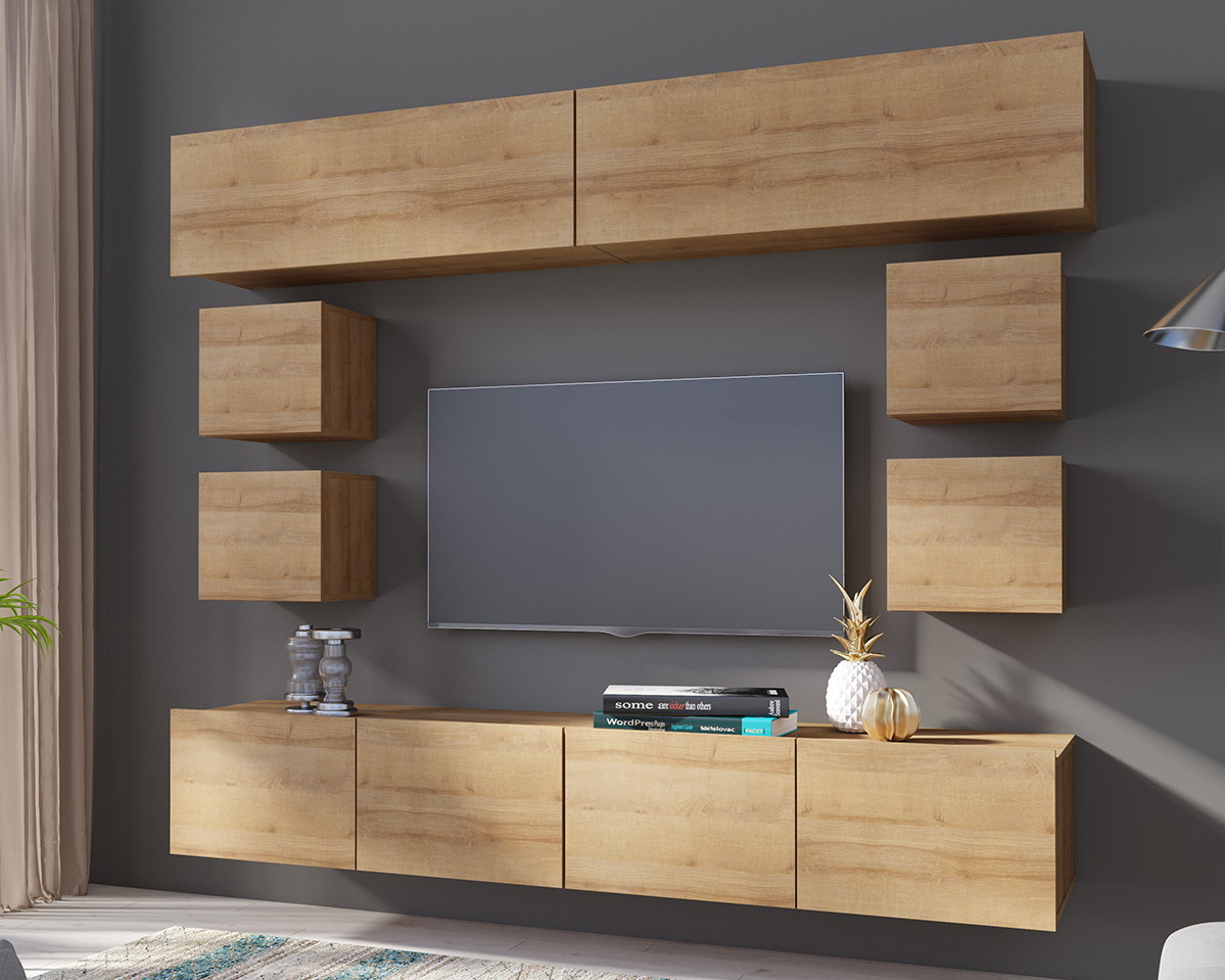 - Die TV-Möbel können als Hängemöbel oder Standmöbel montiert werden (Füße im Lieferumfang enthalten),