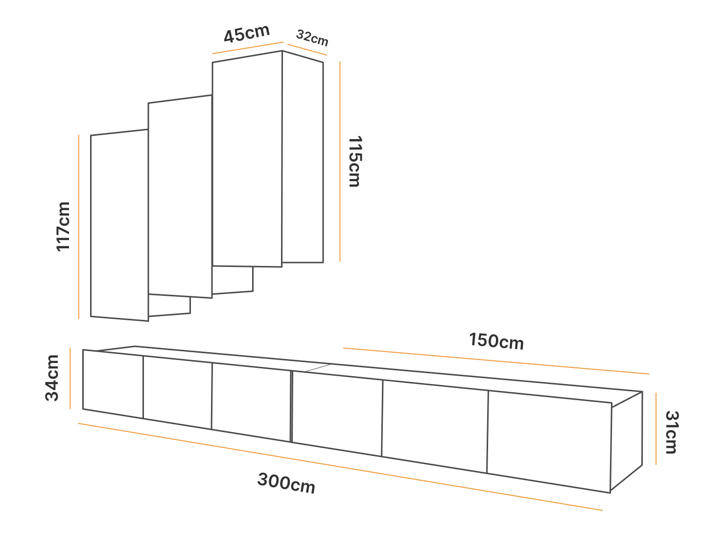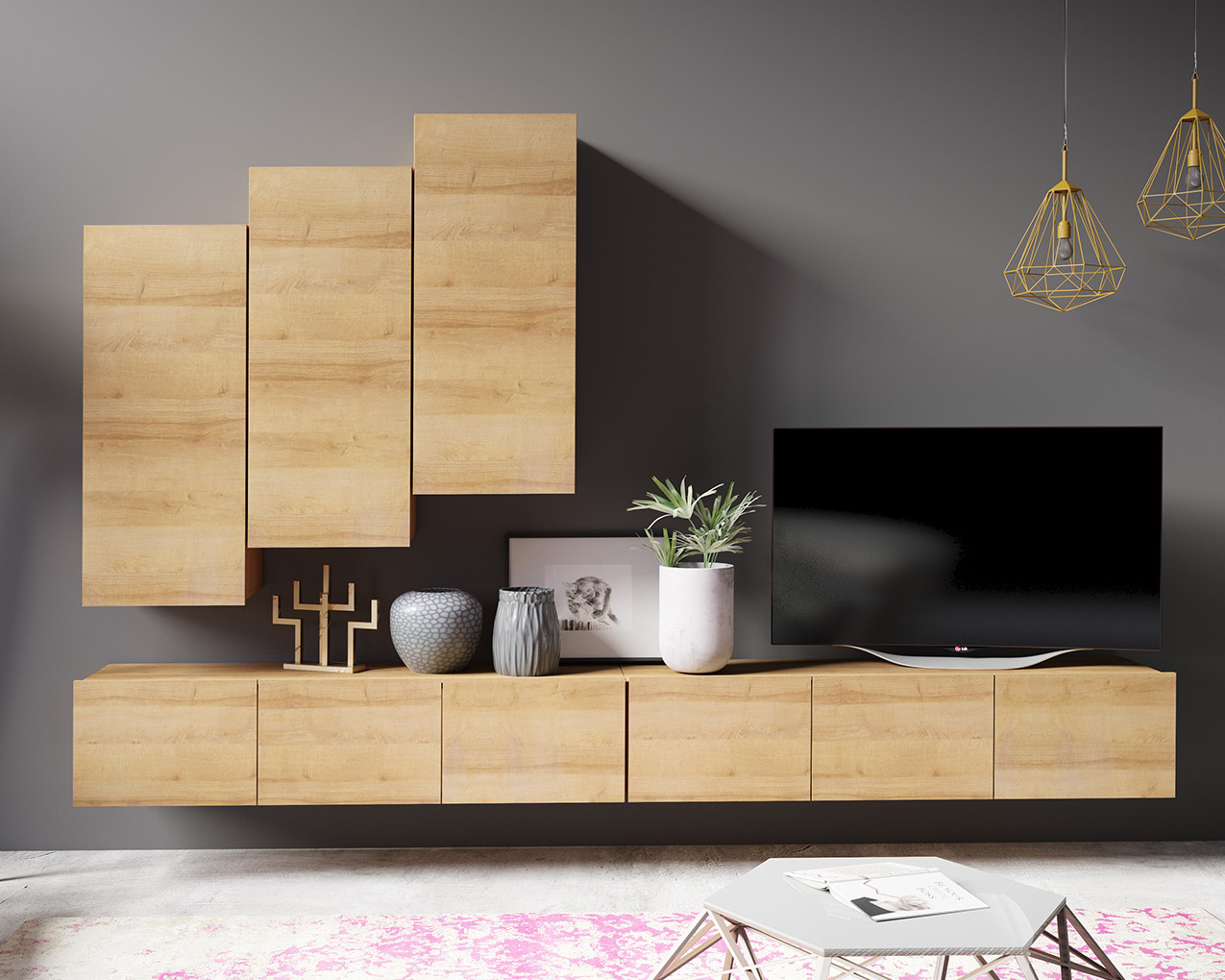 • Die TV-Möbel können als Hängemöbel oder Standmöbel montiert werden (Füße im Lieferumfang enthalten),