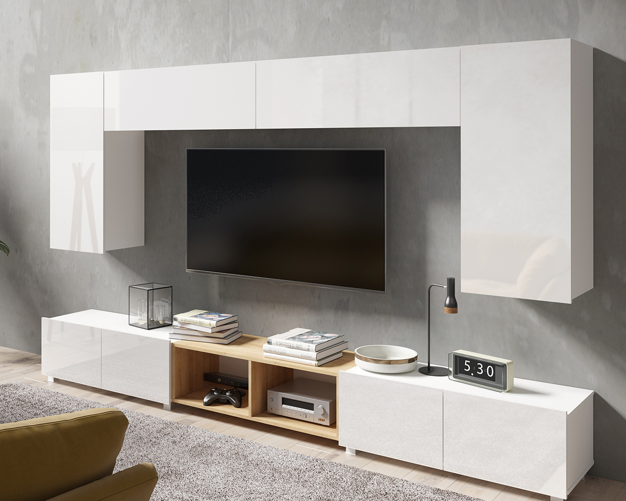 - Die TV-Tische und Regale können als Hänge- oder Standmöbel montiert werden (Füße im Lieferumfang enthalten),