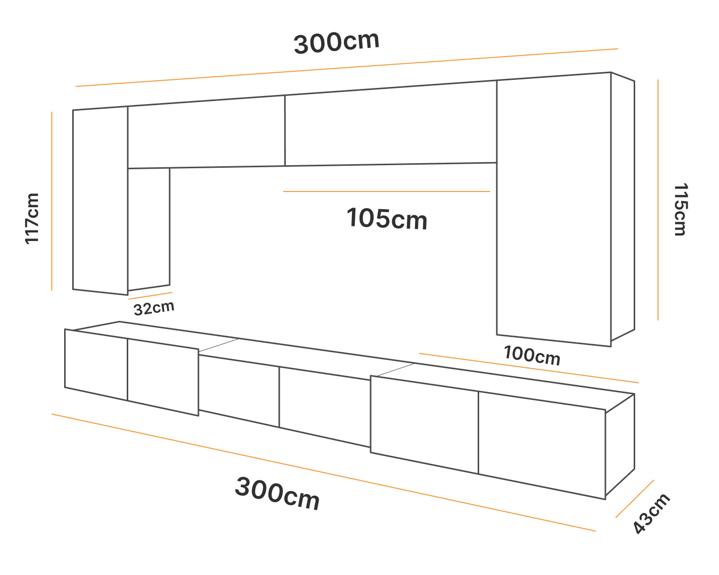 - Horizontale Hängeschränke: x1 Tür nach oben öffnend,