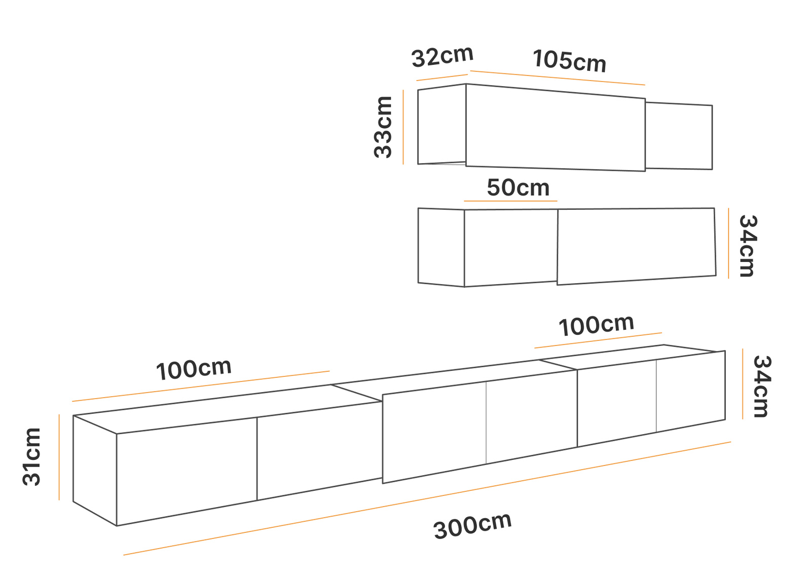 • Möglichkeit der Montage von TV-Tischen und Regalen als Hänge- oder Standmöbel (Füße im Lieferumfang enthalten),