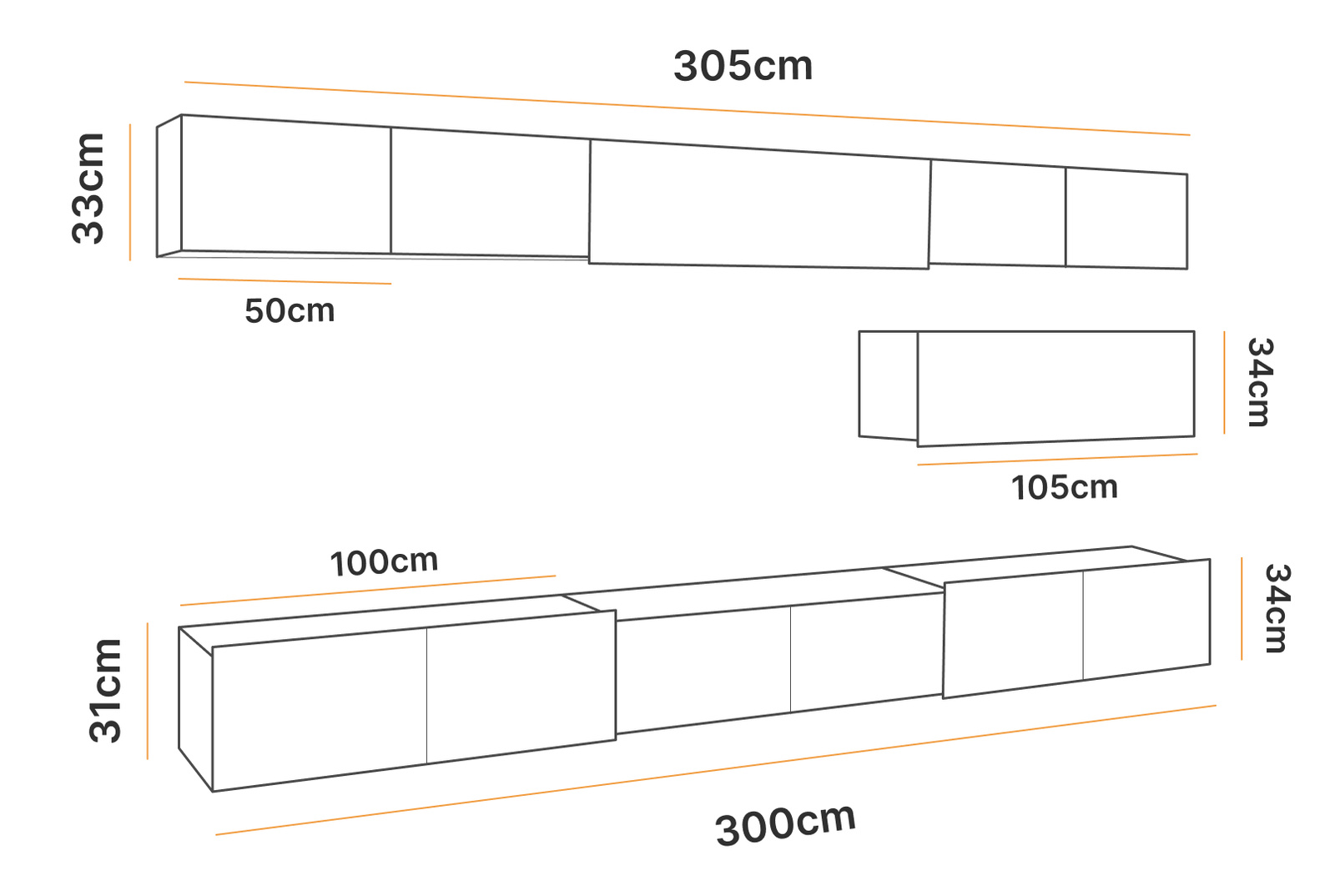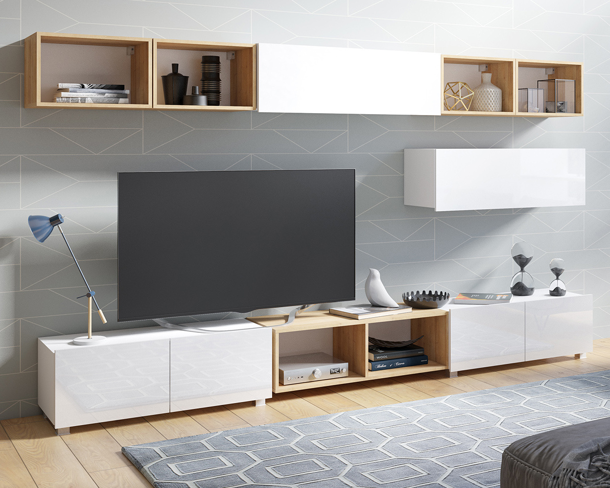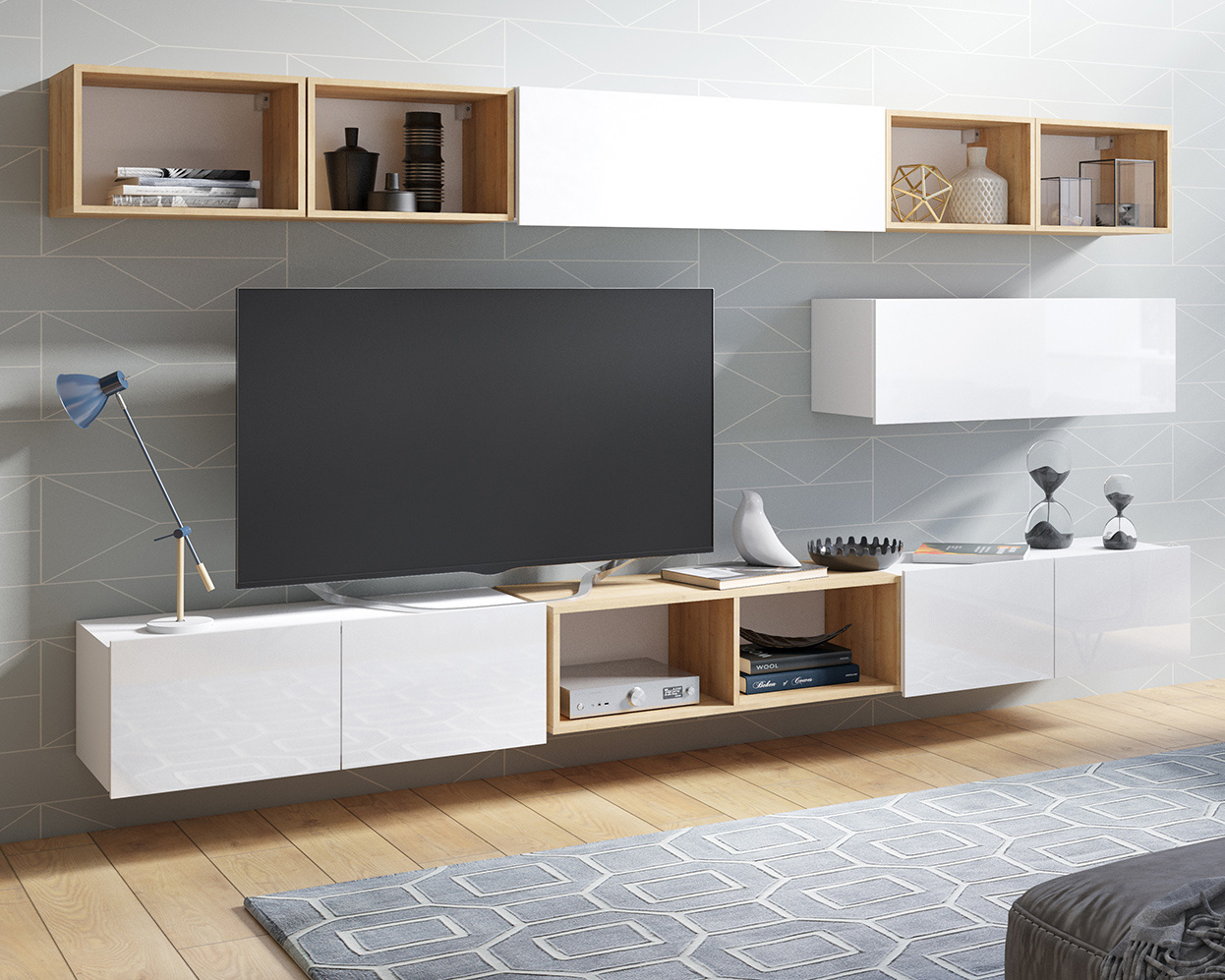- Möglichkeit der Montage von TV-Tischen und Regalen als Hänge- oder Standmöbel (Füße im Lieferumfang enthalten),
