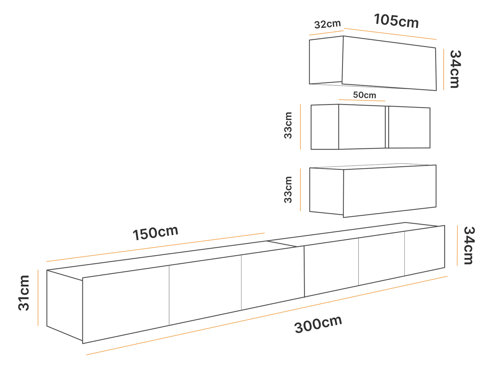 - Die TV-Möbel können als Hängemöbel oder Standmöbel montiert werden (Füße im Lieferumfang enthalten),