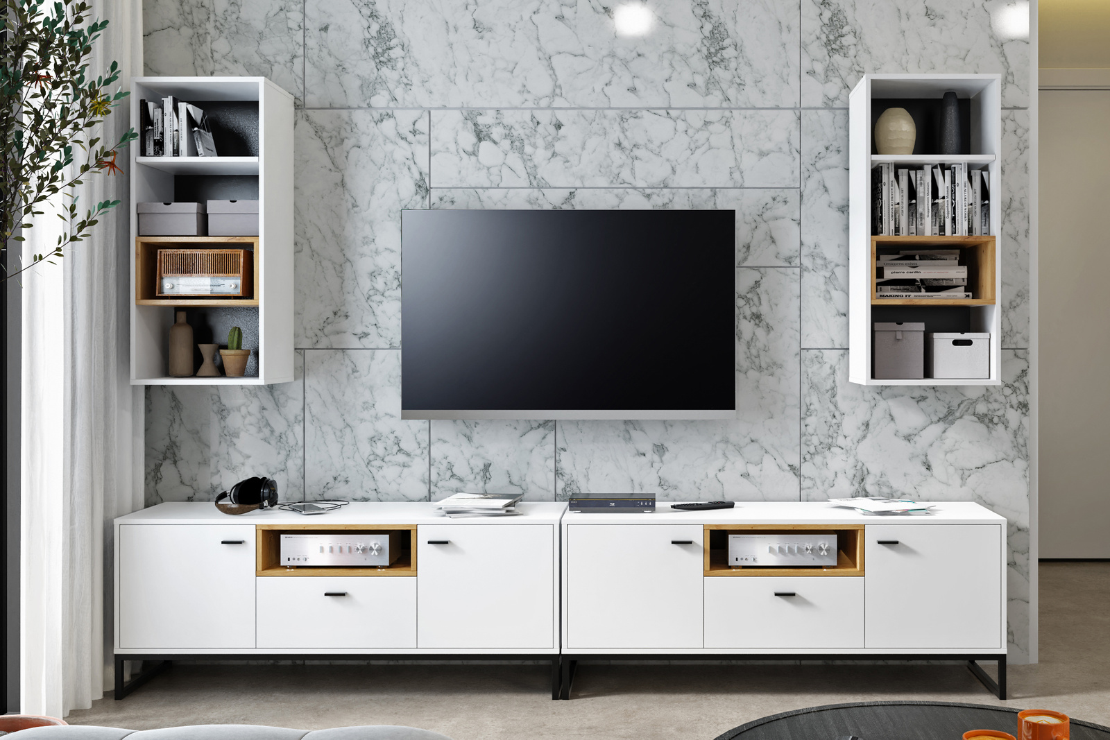 - Randy-TV-Schränke: 2x Flügeltüren (leiser Schließmechanismus), 1x Schublade,