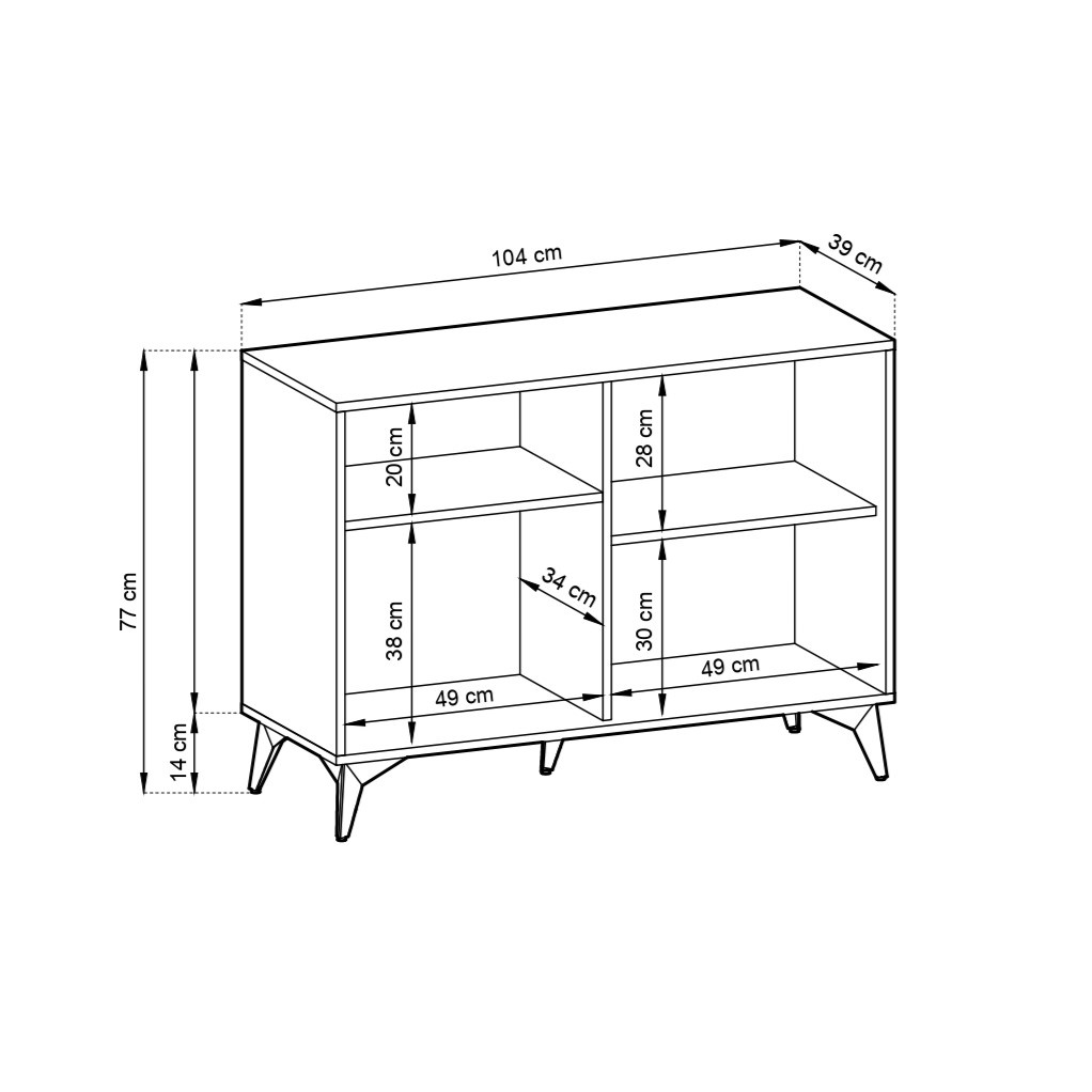 - Die 104 cm breite Kommode Diamond ist die perfekte Wahl für Liebhaber des skandinavischen Designs. Diese einzigartige Kommode verfügt nicht nur über einen geräumigen Innenraum, sondern auch über ein außergewöhnliches Design, das alle Blicke auf sich zieht