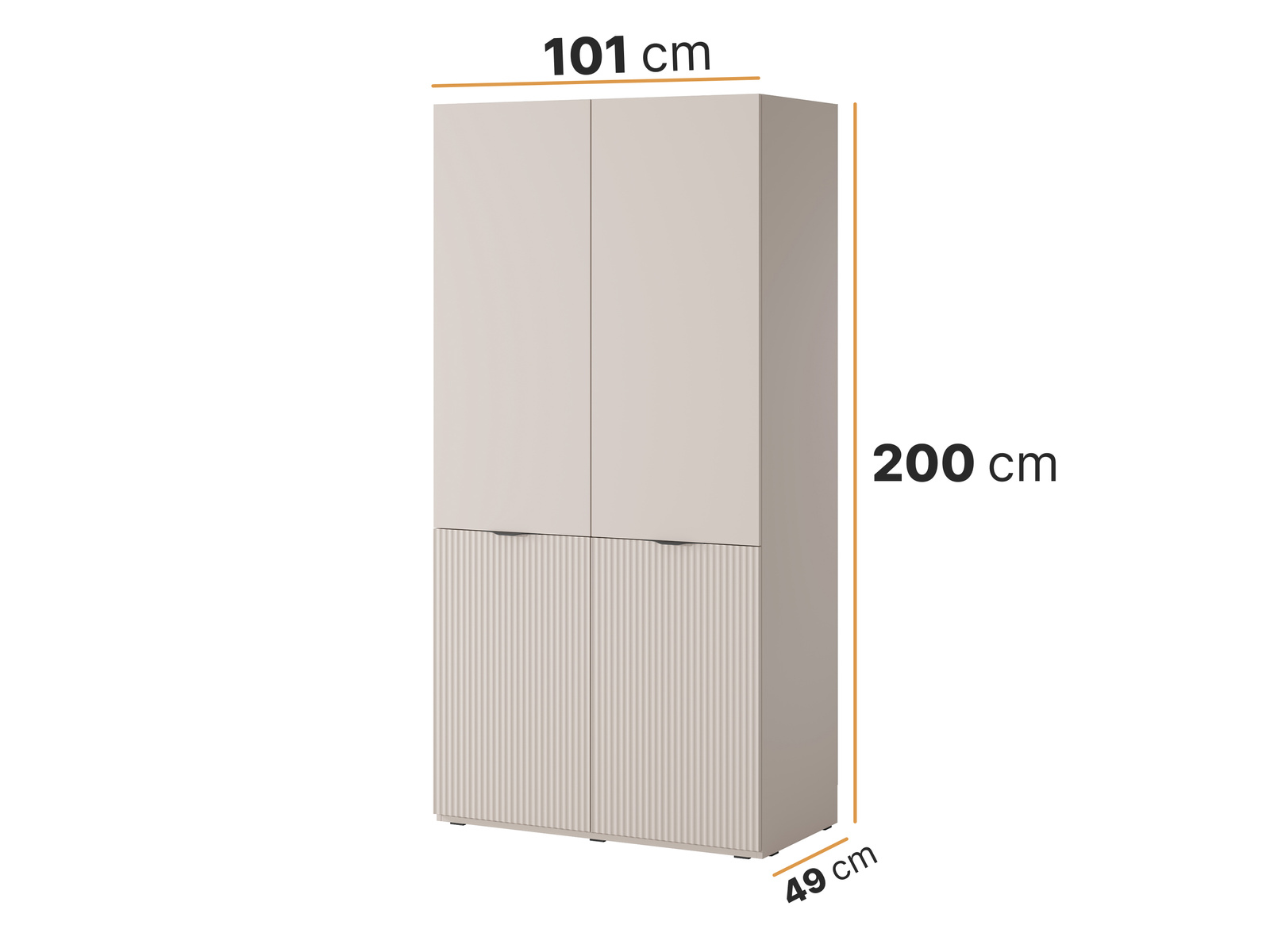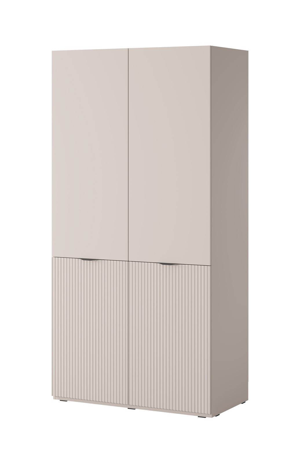 • Modularer Schrank Zen 101 cm in Kaschmirfarbe. Elegant, funktional und geräumig – mit vertikalen Fräsungen, Einlegeböden und doppelter Kleiderstange. Ideal für die Garderobe, das Schlafzimmer oder den Flur.