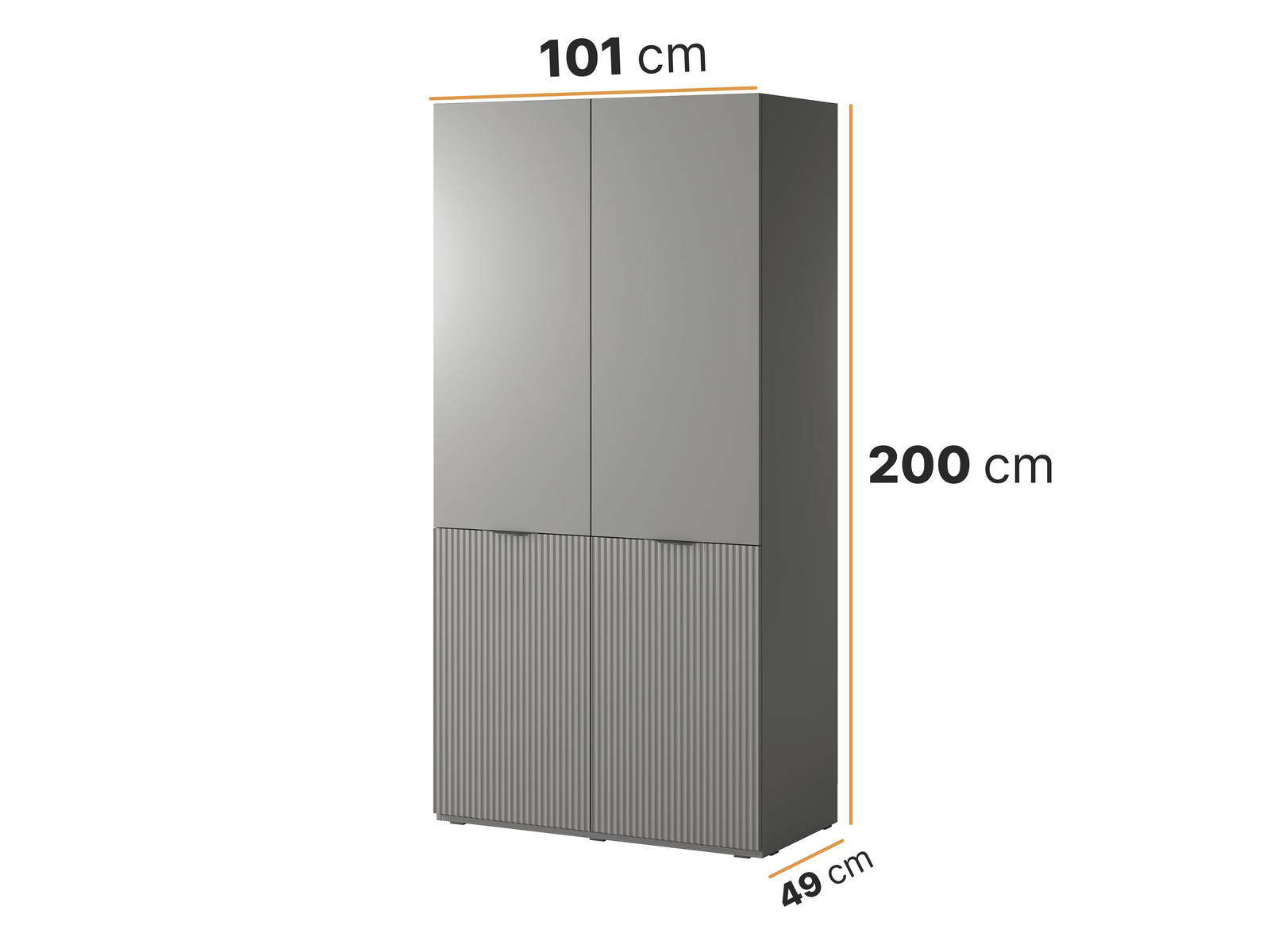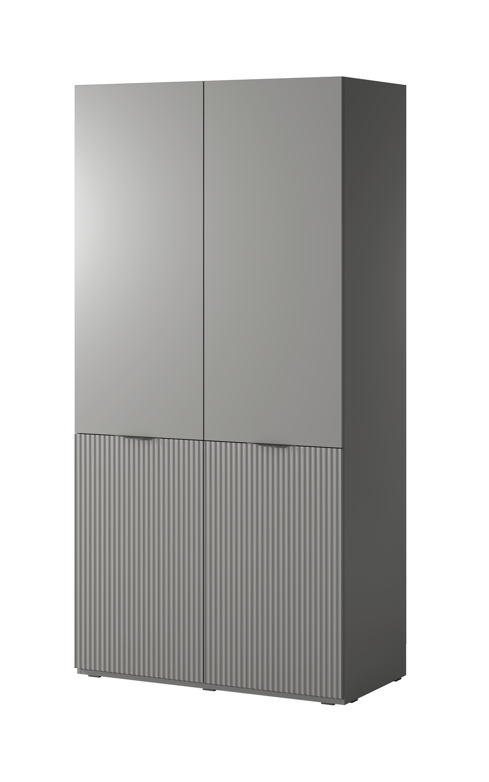 - Modularer Schrank Zen 101 cm in Grau. Elegant, funktional und geräumig – mit vertikalen Fräsungen, Einlegeböden und doppelter Kleiderstange. Ideal für die Garderobe, das Schlafzimmer oder den Flur.