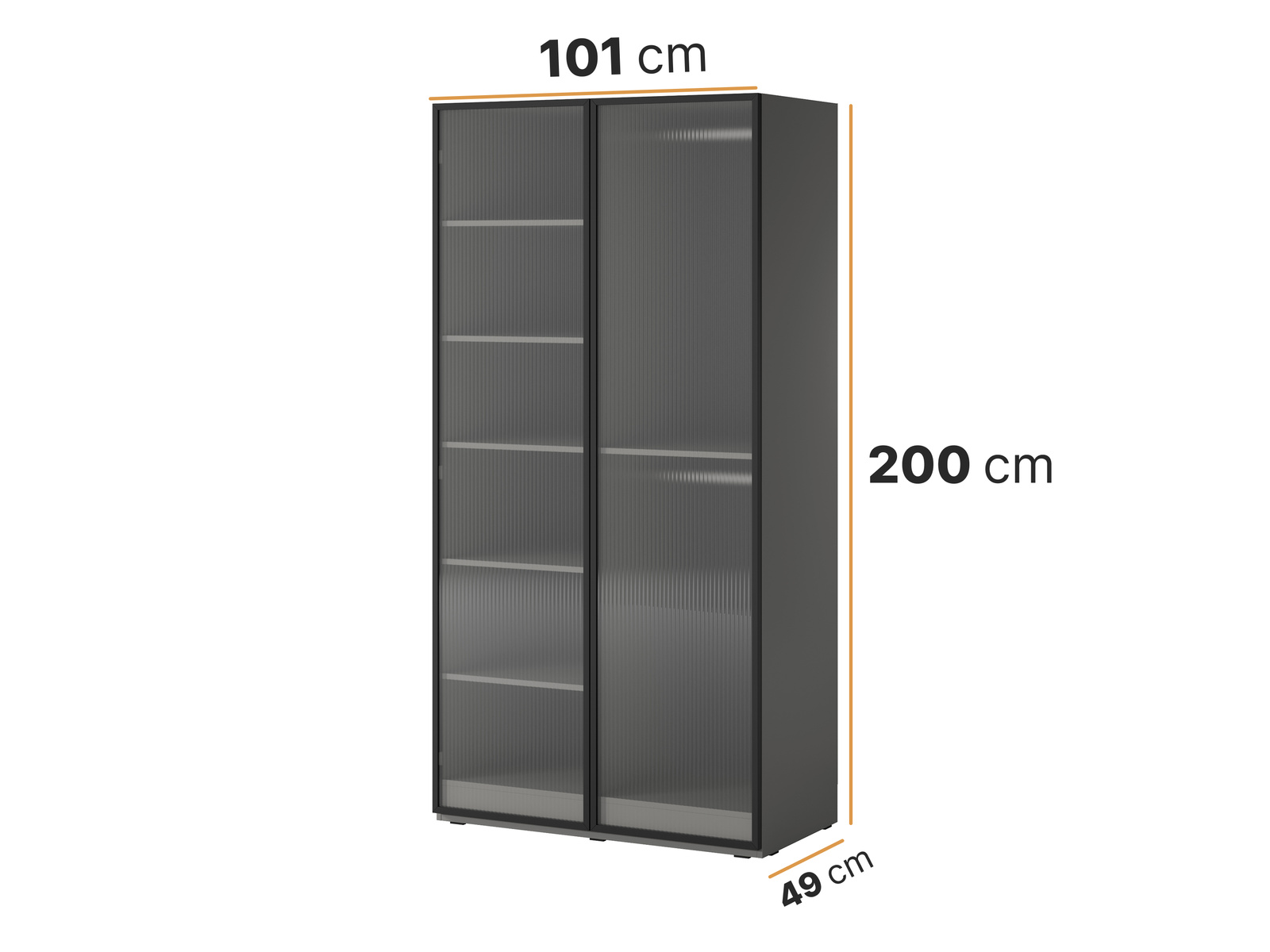 Der moderne, 101 cm breite Modulo-Schrank ist ein Angebot für alle, die Eleganz und Funktionalität schätzen. Der Korpus in Grau harmoniert perfekt mit den aufklappbaren Fronten aus geriffeltem Glas in graphitfarbenen Rahmen – ein Detail, das ins Auge fällt und Leichtigkeit in den Raum bringt.